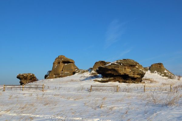 На берегу озера Большие Аллаки, недалеко от города Касли, находится одна из самых загадочных достопримечательностей Челябинской области. В 50 метрах от воды на небольшом возвышении, «прижавшись друг у другу», стоят 14 огромных каменных глыб, которые называют «Каменными палатками» или «древним святилищем». Особенно удивительно то, что в радиусе нескольких километров от этого места — нет ни одной скалы или горы, кругом сплошная степь…