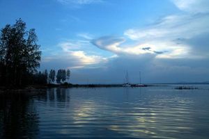 Сначала заехали куда-то перед коттеджами, берег не представлял интереса — заросший травой и осокой, дорога меж крутейших коттеджей тоже никакая. Это вообще очень характерная вещь для нас: понастроят дорогущих домин, но дороги к ним не лучше самого поганого деревенского просёлка. Вернулись назад на асфальт, проехали дальше. Пересекли ту самую дамбу, с которой, собственно, и начинается водохранилище. По виду, она построена никак не позже пятидесятых годов прошлого века. Потом свернули налево на грейдер. В навигаторе дорога просто закончилась. Я уже думал, что зря поехал, но всё-таки продолжал движение. В итоге, выехали на прелестное дикое местечко на берегу. Увидели лагерь с палатками и машинами 96 региона (Свердловская область). Подъехали до 10 утра, и никого не было видать, видимо, все они спали. Встали, развели очаг. Буквально, очаг, потому что построен из камней. Поставили котёл. Дров довольно много — березняк, и полно всяких падших веток. Заметно прохладно, особенно для 26 июля. Довольно сильный ветер, на водохранилище волна.